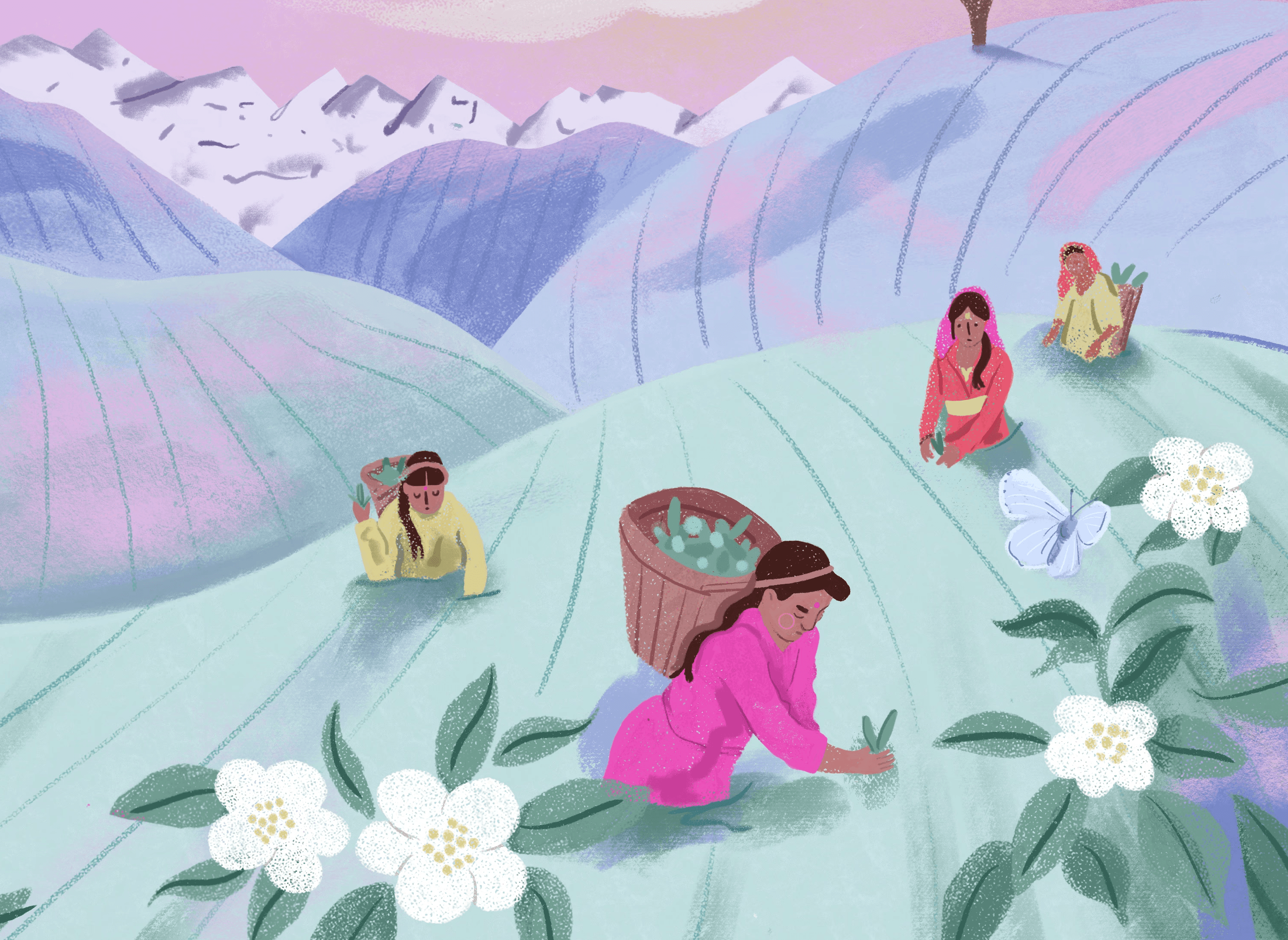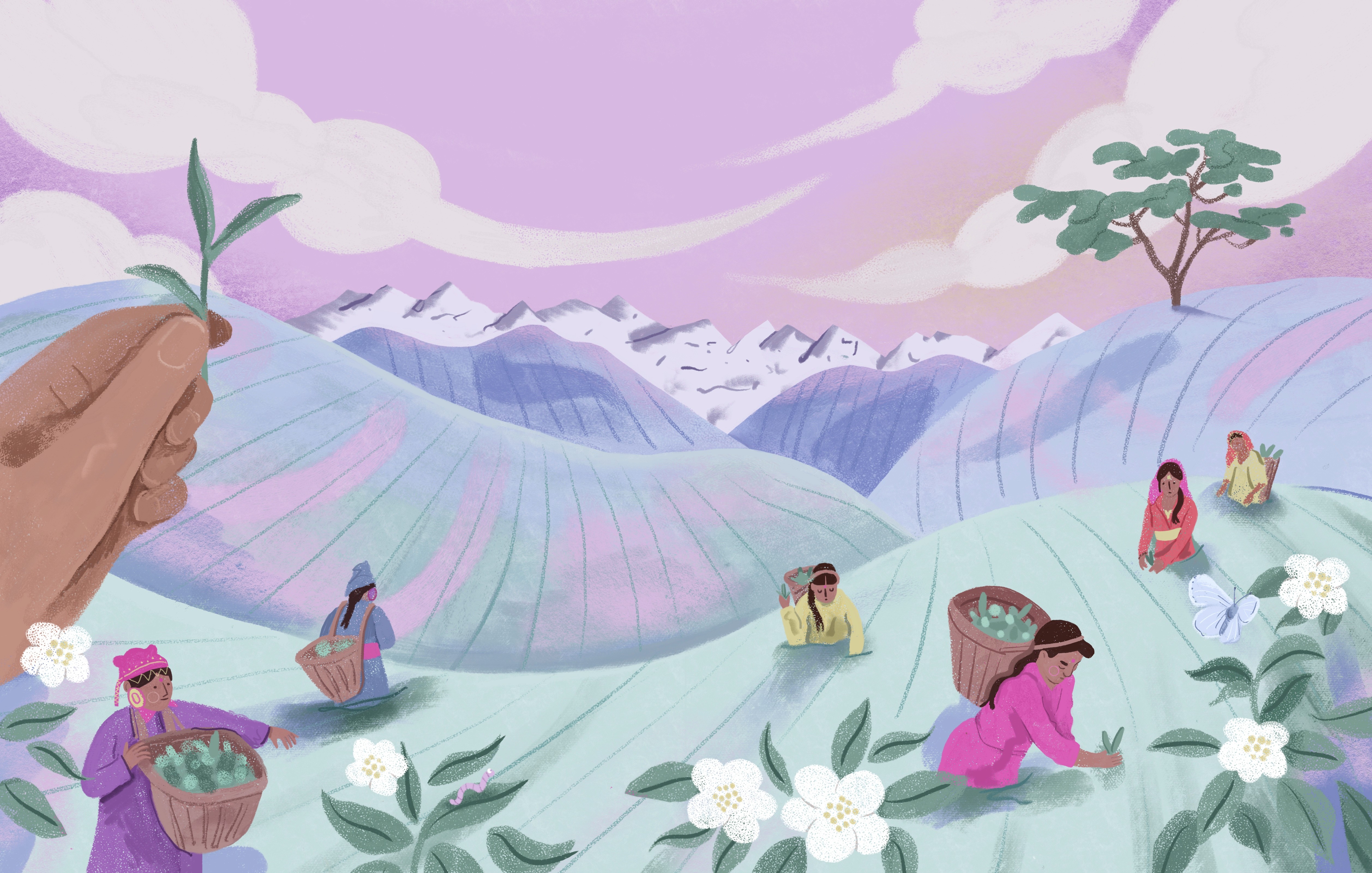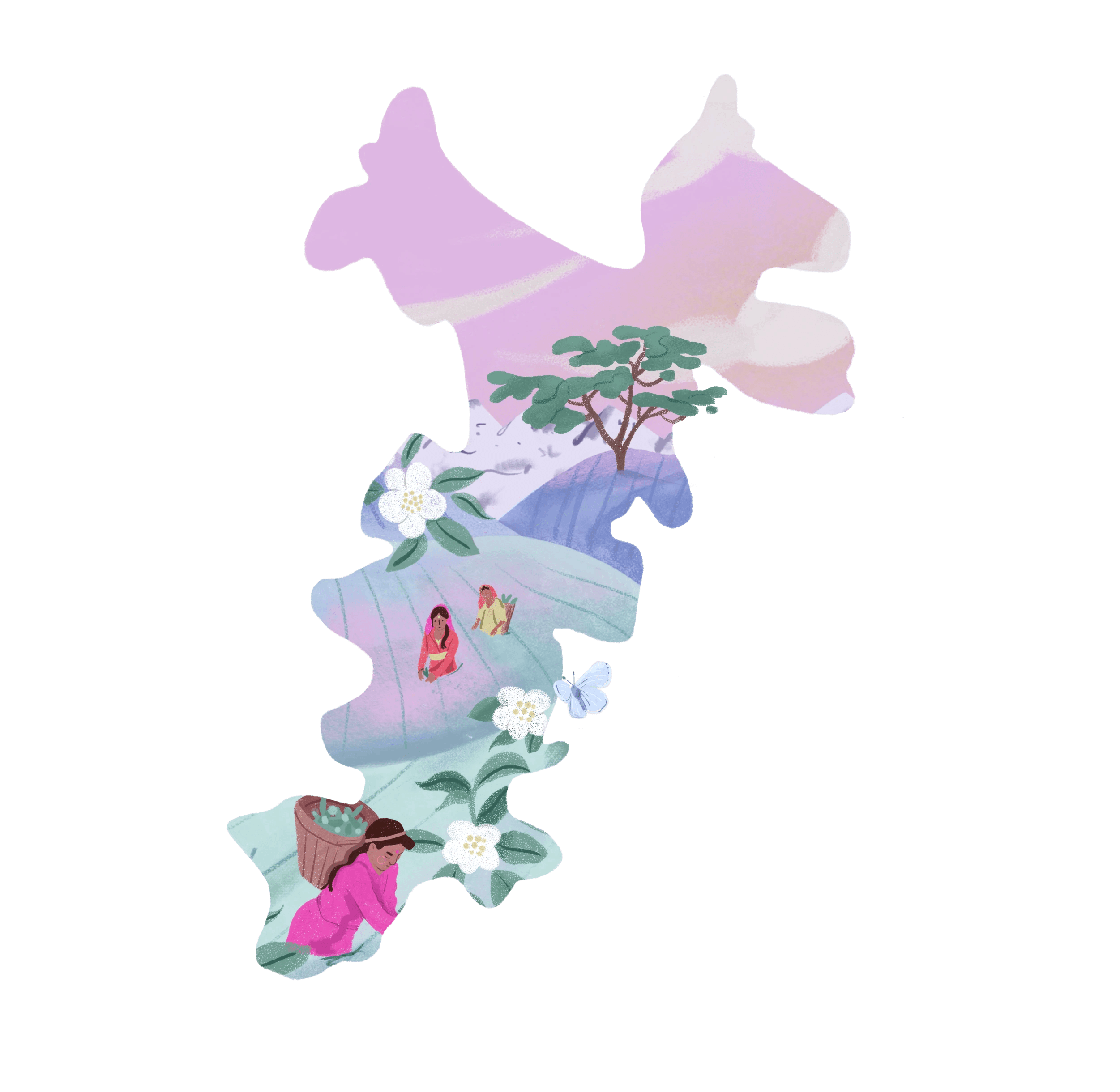 An illustration that makes the origin of Darjeeling tea feel tangible, atmospheric and alive.