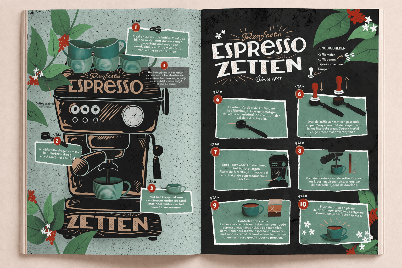 A visual series of six illustrated infographics explaining different coffee brewing methods. Designed to turn complex barista knowledge into clear, engaging content for subscribers.