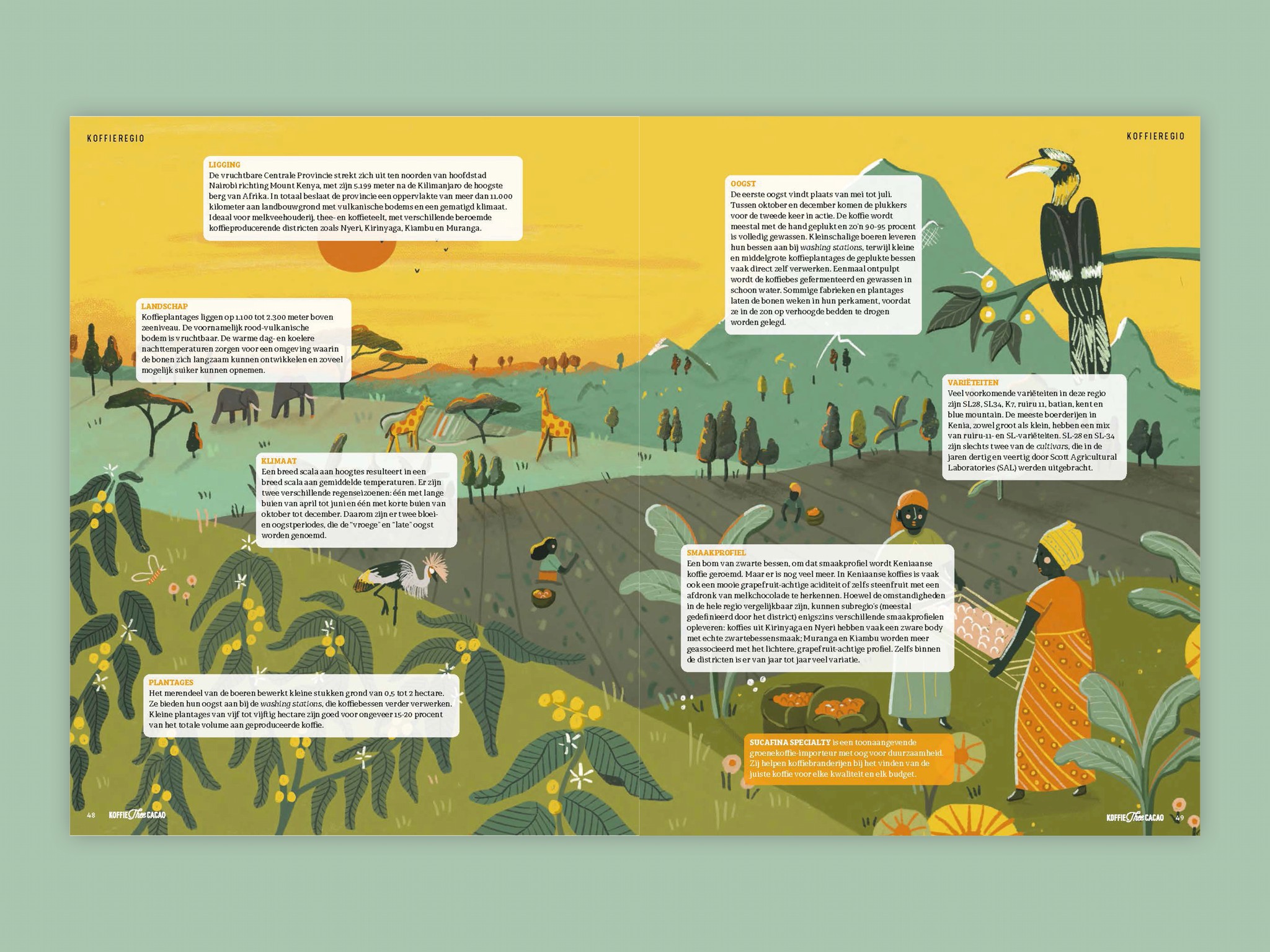 The visual language had to be warm without being romantic. Specific without being documentary. Close enough that a reader in the Netherlands feels something about a harvest in Ethiopia or a plantation in Java, without ever having been there.