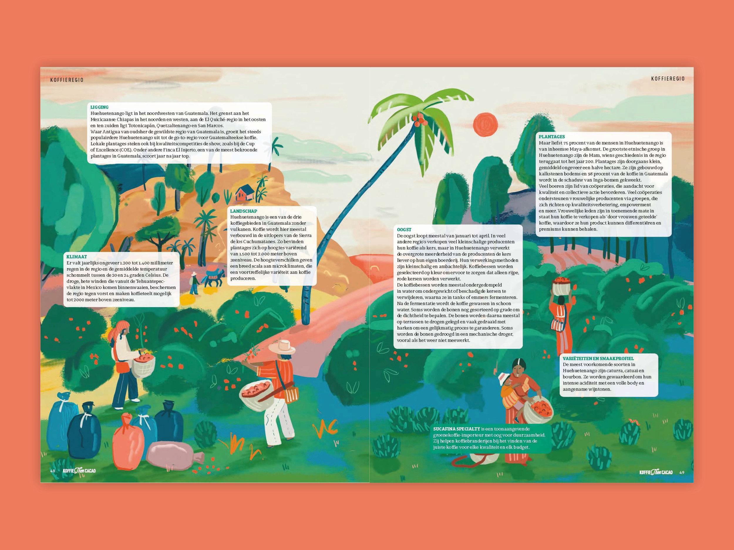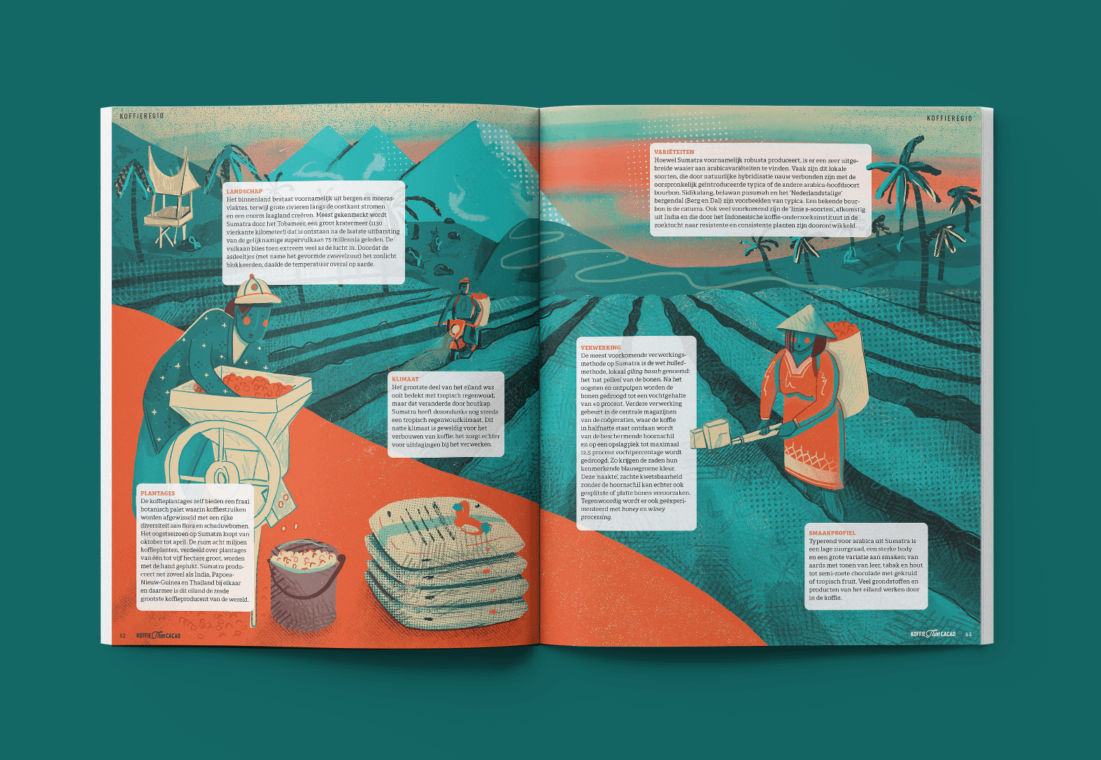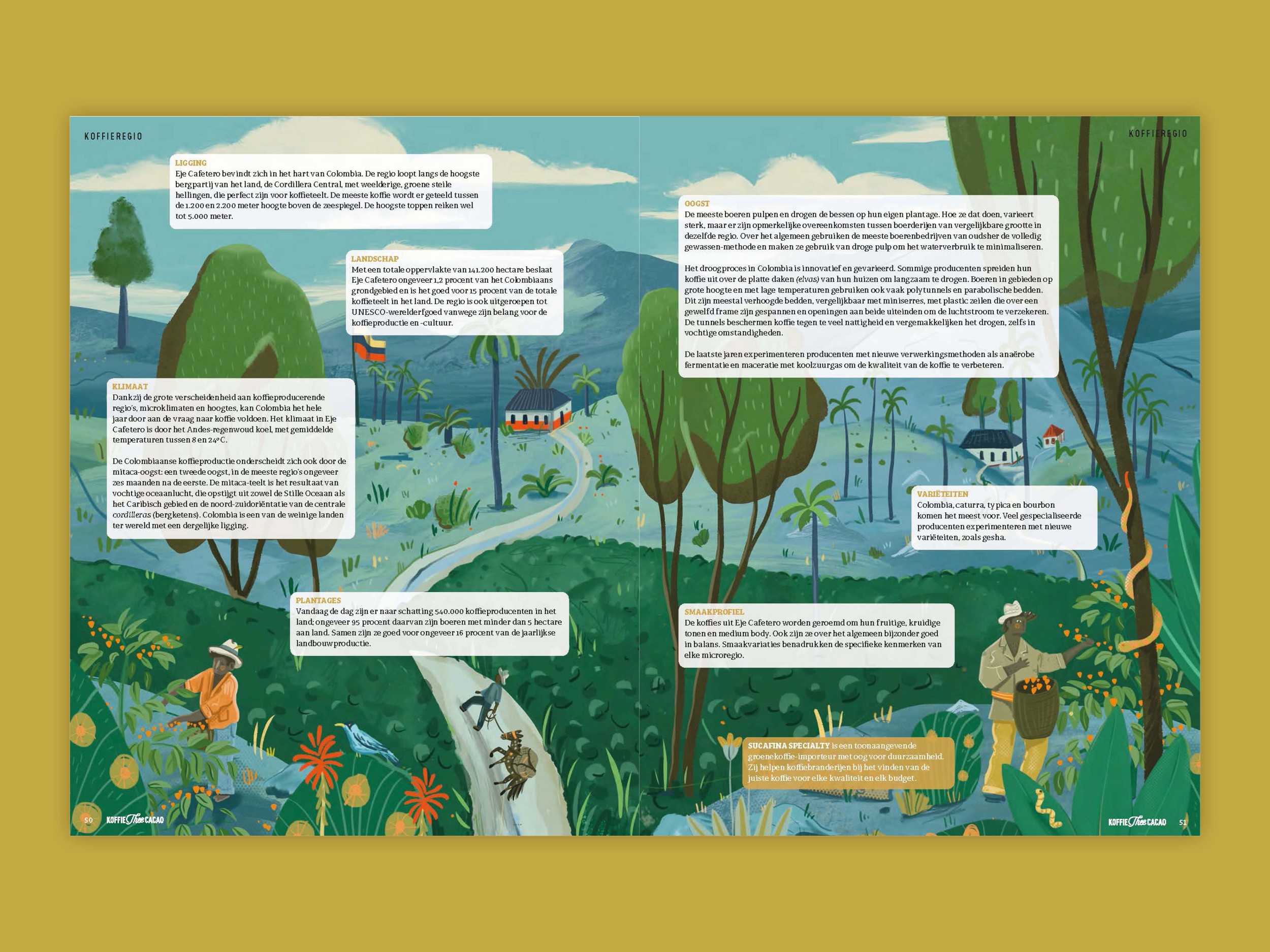 By approaching each region as its own visual world, the illustrations help readers feel closer to the beginning of the story behind coffee, tea and cacao. They add character and recognition to the editorial content, while making the subject more accessible and engaging. This project reflects an important part of my practice: using illustration not only to explain, but to create connection.