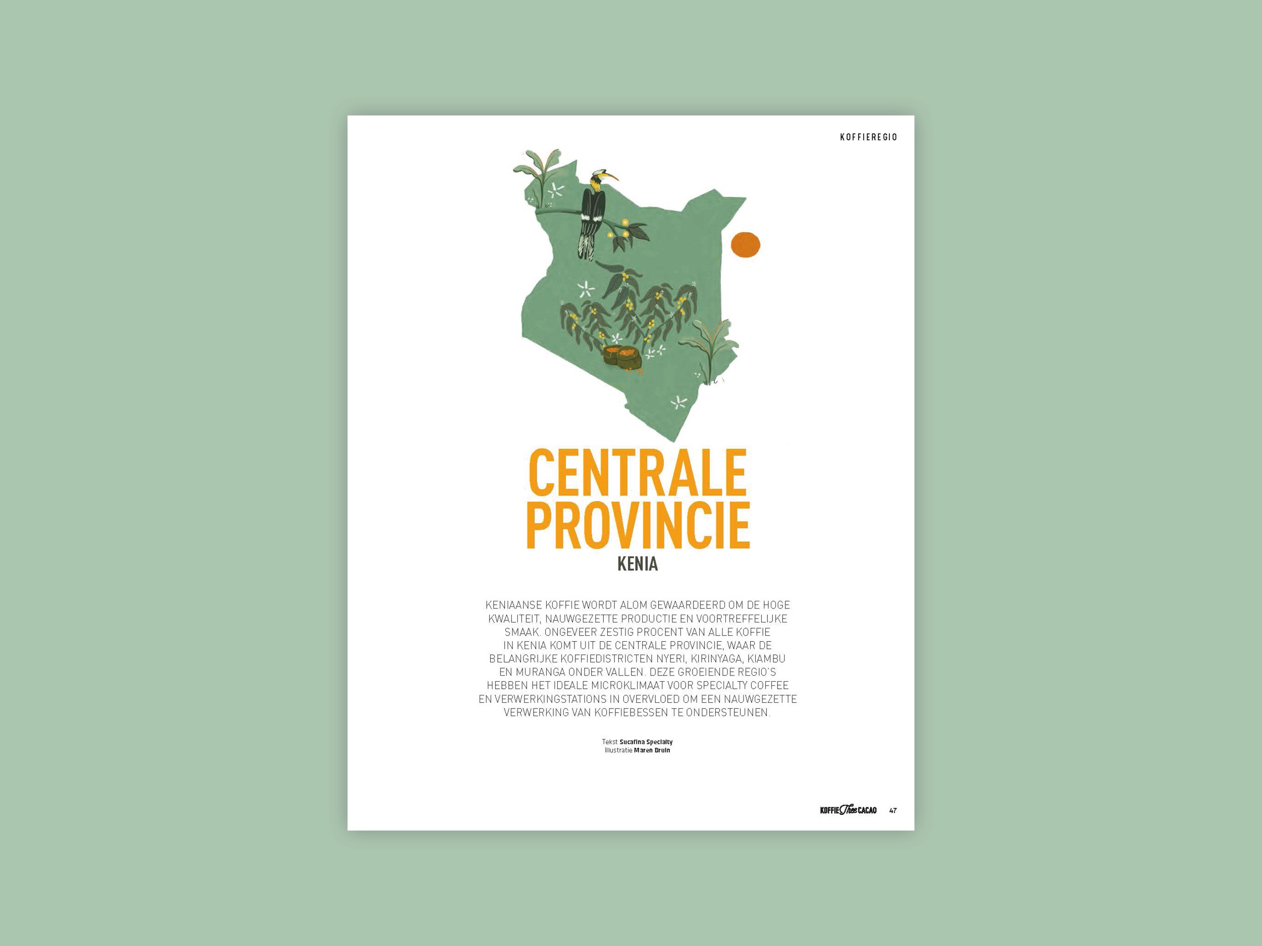 For KoffieTcacao magazine, I created a series of illustrations connected to different coffee, tea and cacao regions. The challenge was to make each piece feel rooted in a specific place, while still working clearly within the magazine. These illustrations needed to do more than decorate an article. They had to help the reader feel some connection to the landscapes, crops and atmosphere behind the product.